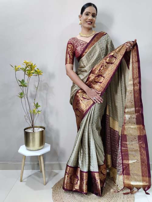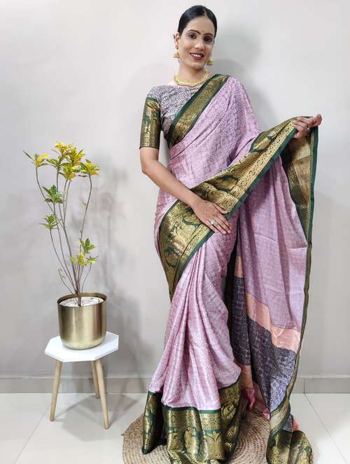 women self design dharmavaram saree with blouse