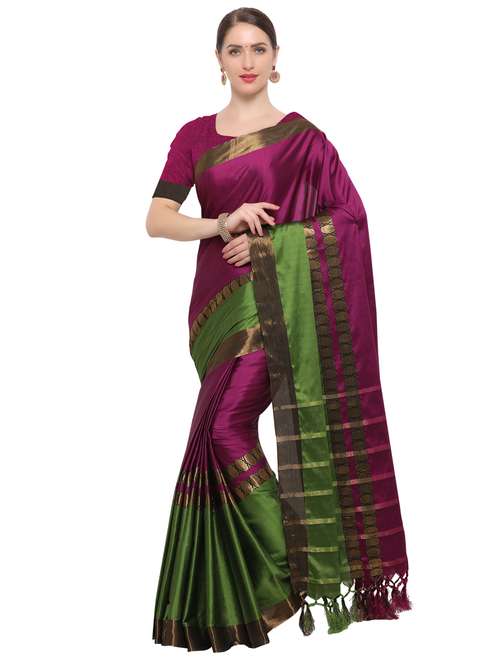 contrast zari border woven saree