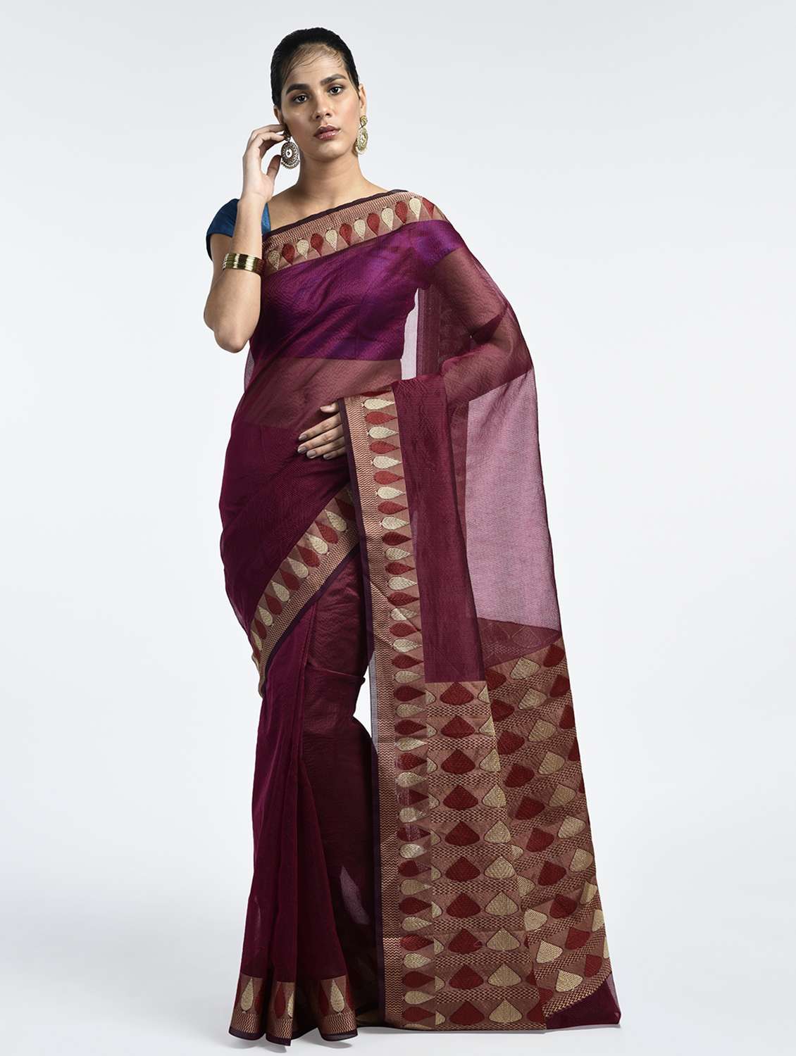 contrast zari border handloom saree with blouse