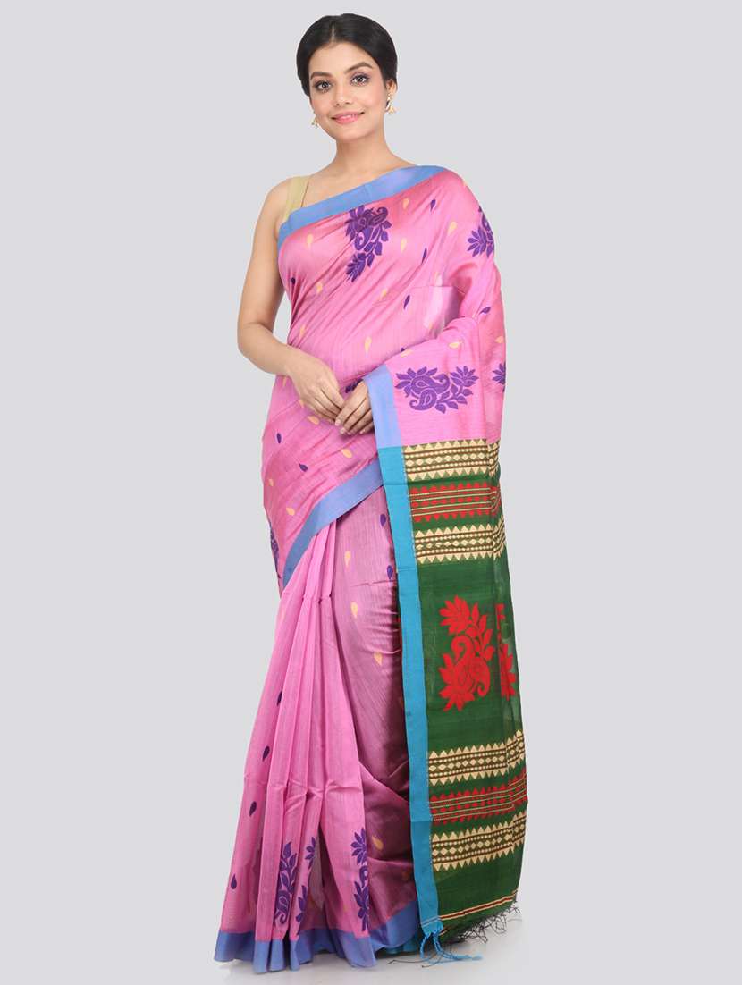 pink cotton silk handloom saree with blouse