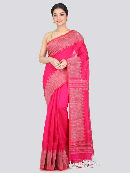 - » pink cotton silk handloom saree with blouse