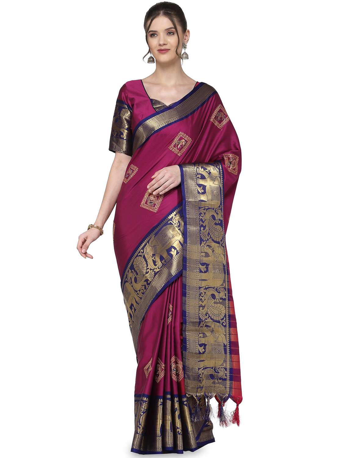 - » women's self design magenta colored saree with blouse