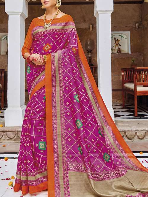 - » constrat border geometrical printed saree with blouse