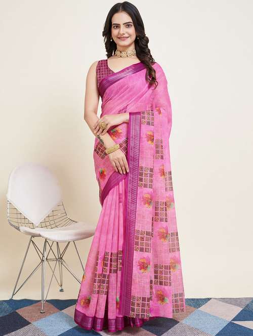 - » women pink printed saree with blouse