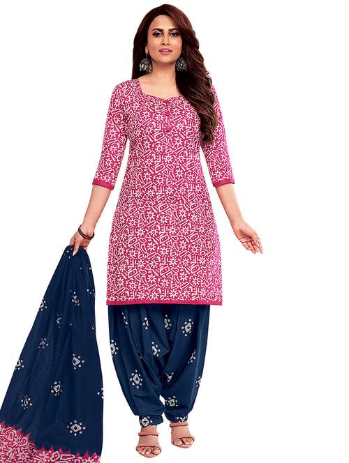 - » printed unstitched patiyala suit