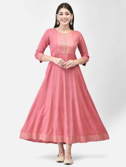 - » pink three quarter sleeve flared kurta