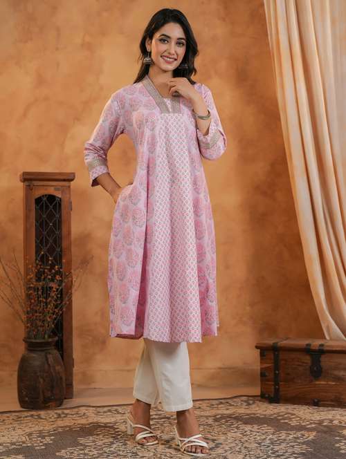- Find gorgeous sets of ethnic wears in trending designs in pink colors suitable for casual wear of occasions.