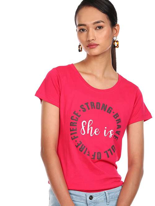 - » women's chest print round neck t-shirt
