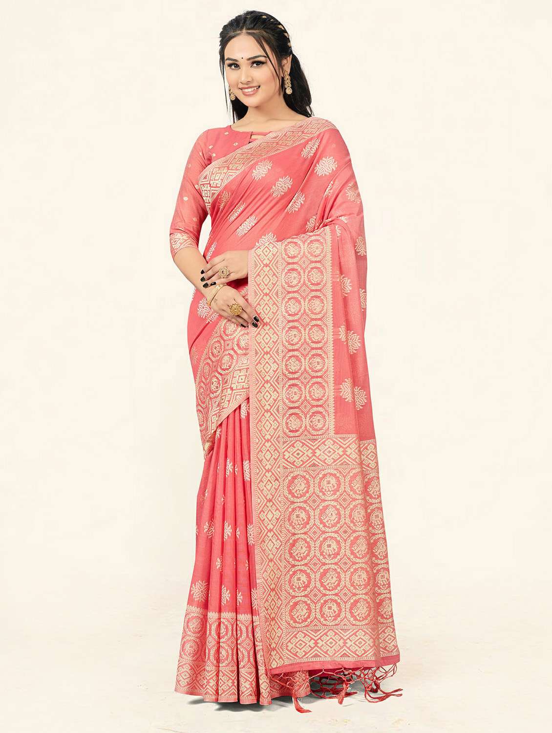 - » self design woven saree with blouse
