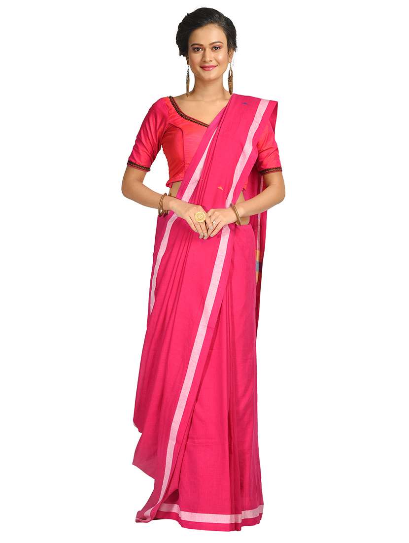 - » women's bordered pink colored saree with blouse