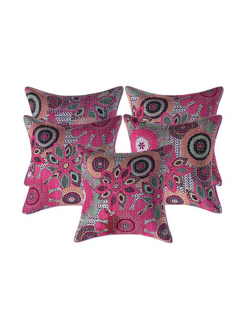 - » texstylers-kantha work/suzaini-5 piece standard size cushion cover set-(16x16 inches),pink