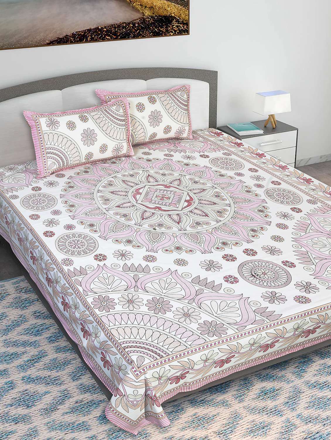 - » texstylers cotton printed kantha pattern traditional jaipuri queen size bedsheet with 2 pillow covers