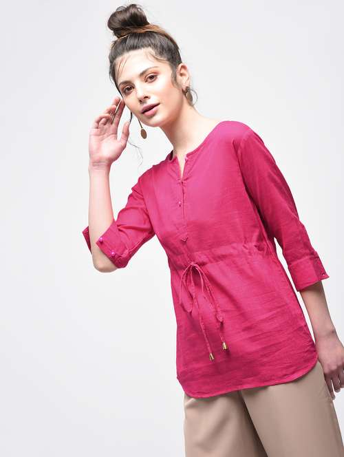 drawstring detail henley top - 15857064 - Very Small Image - 1