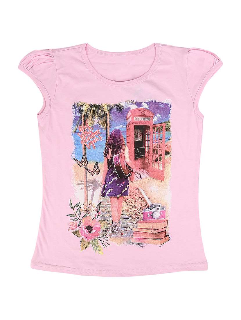 pink printed regular tee