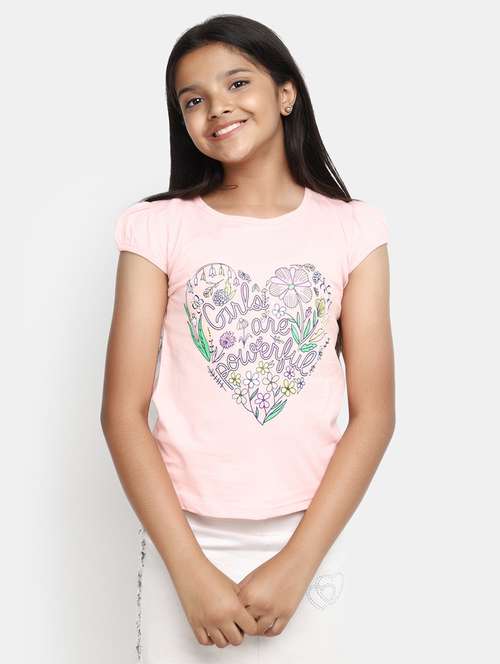 girls round neck printed regular tee