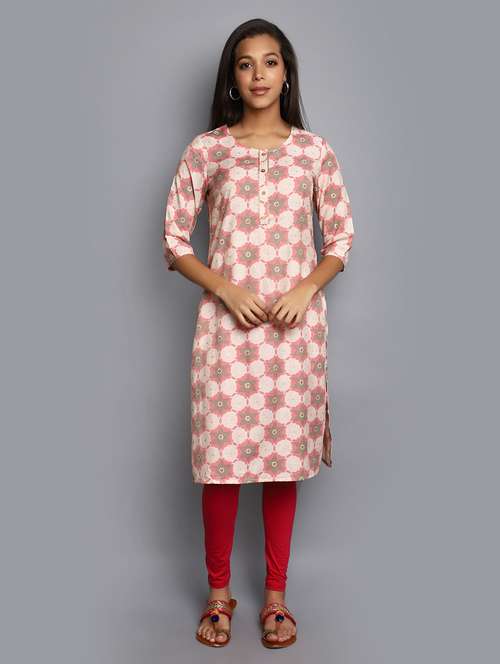 - » pink three quarter sleeve straight kurta