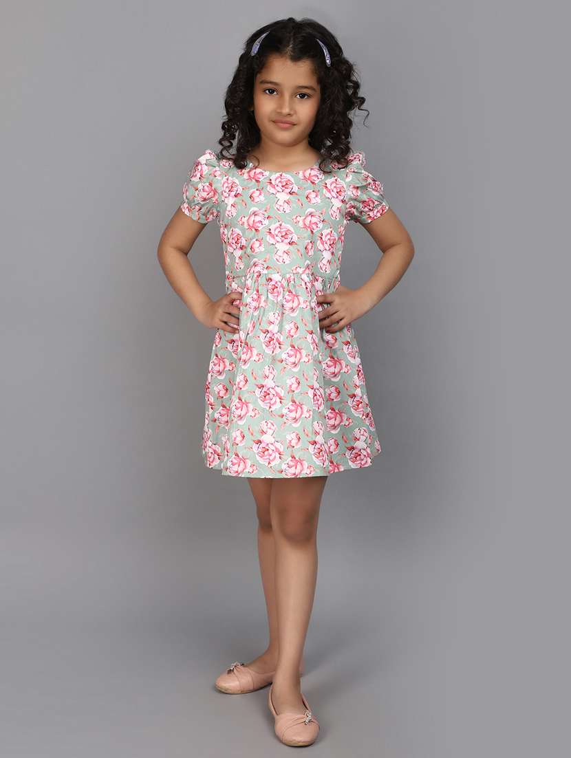 - » girls round neck printed frock
