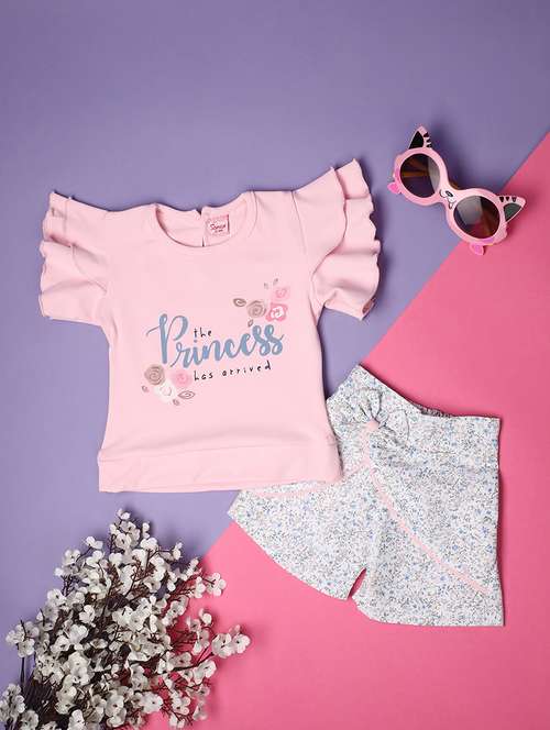 - Dress up your little princess in twin sets and jump suits in shorts sets with magnificent embellished designs to make her childhood more fun and fashionable.