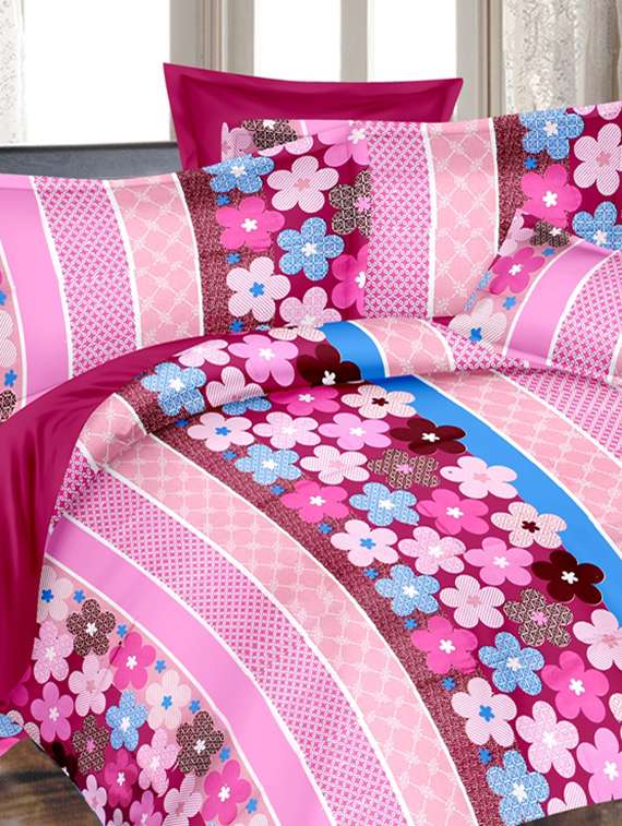 valtellina floral pink cotton double bed sheet with 2 pillow cover - tc-250 - 10630365 - Very Small Image - 1