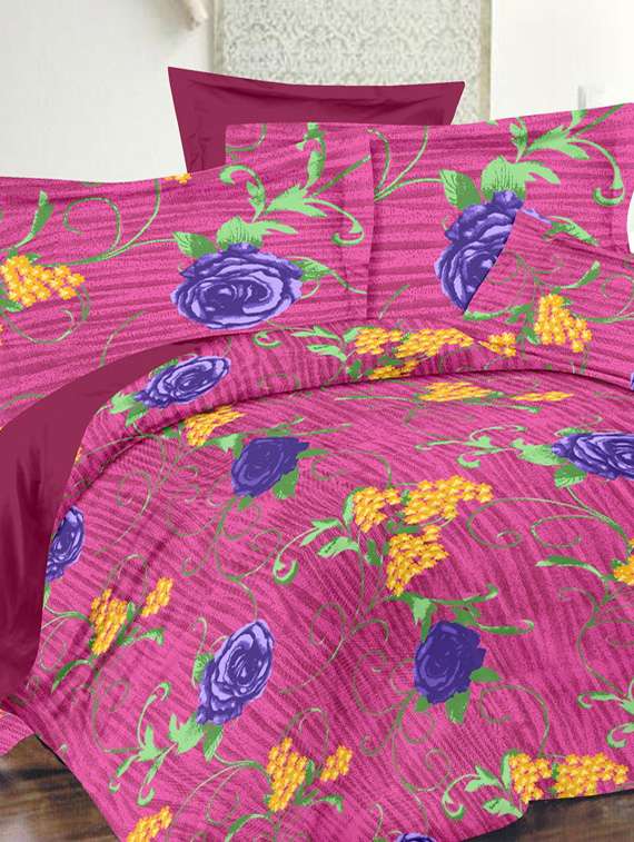 valtellina floral pink cotton double bed sheet with 2 pillow cover - tc-250 - 10630390 - Very Small Image - 1