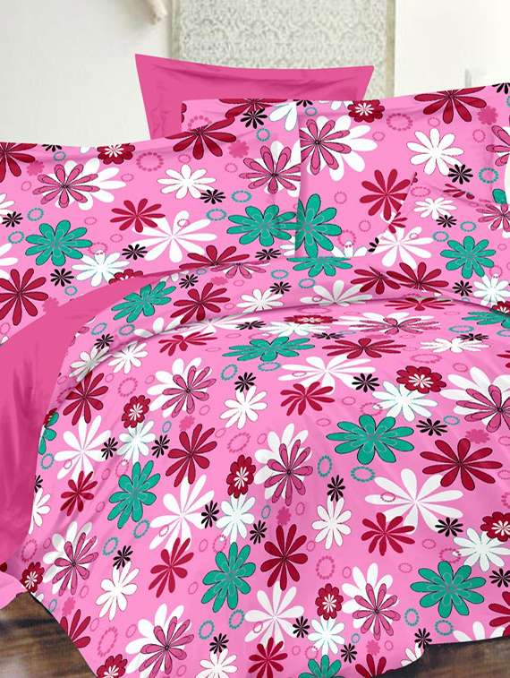 - » valtellina floral pink cotton double bed sheet with 2 pillow cover - tc-250