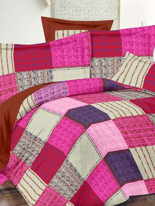 valtellina geometric pink cotton double bed sheet with 2 pillow cover - tc-250 - 10630408 - Very Small Image - 1