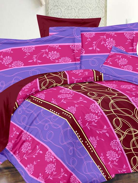 - » valtellina floral pink cotton double bed sheet with 2 pillow cover - tc-250