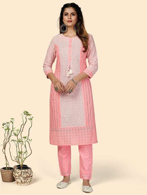 pink cotton kurta pant set