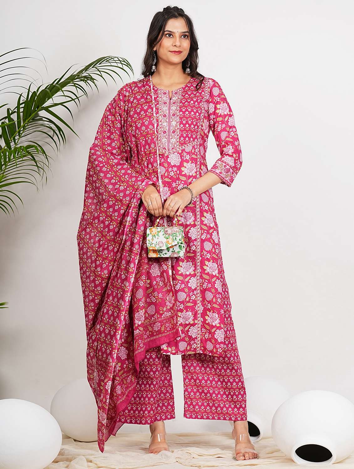 - » women three quarter sleeve kurta palazzo with dupatta set