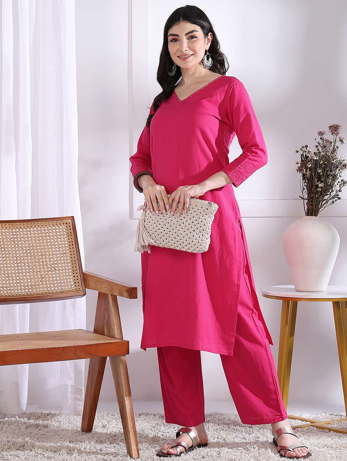 - Find gorgeous sets of ethnic wears in trending designs in pink colors suitable for casual wear of occasions.