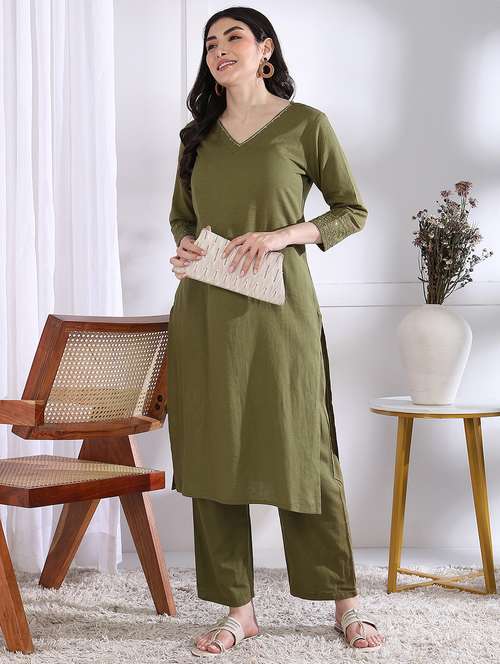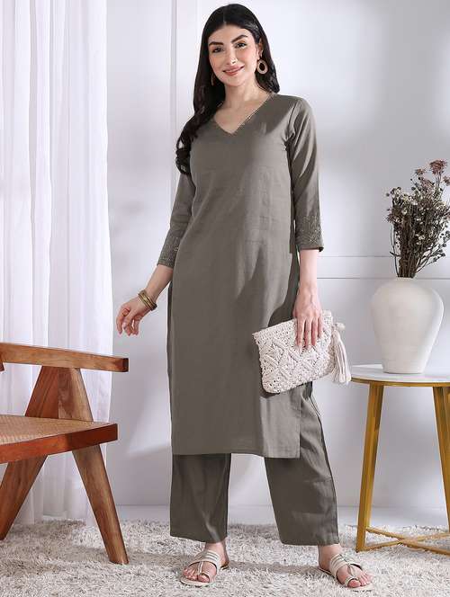- Browse through the latest range of ethnic sets for women with tailored sleeve designs with sequin works.