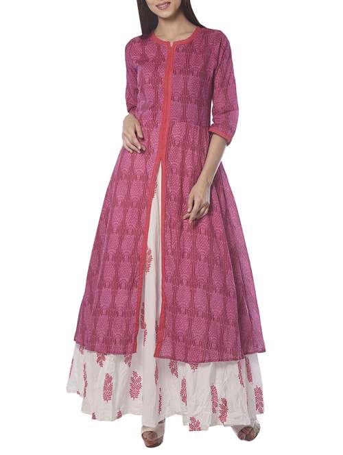 pink cotton printed high slit kurta