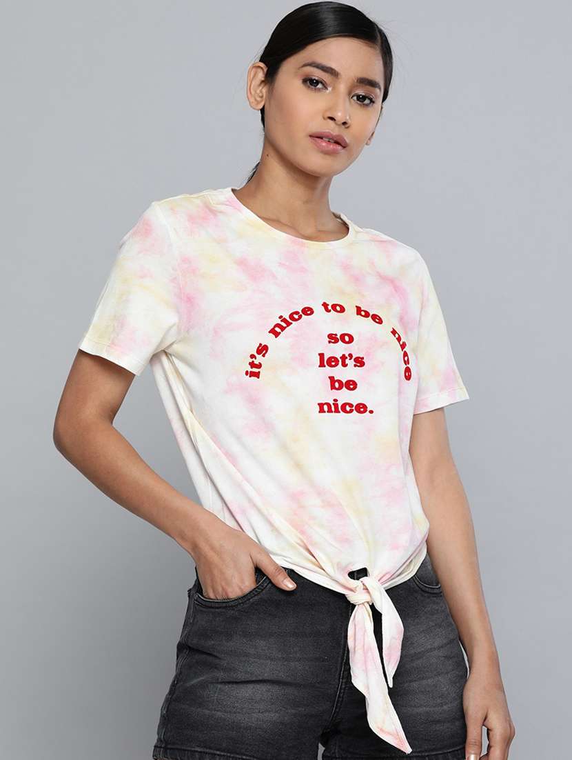 - » short sleeved chest-printed regular top