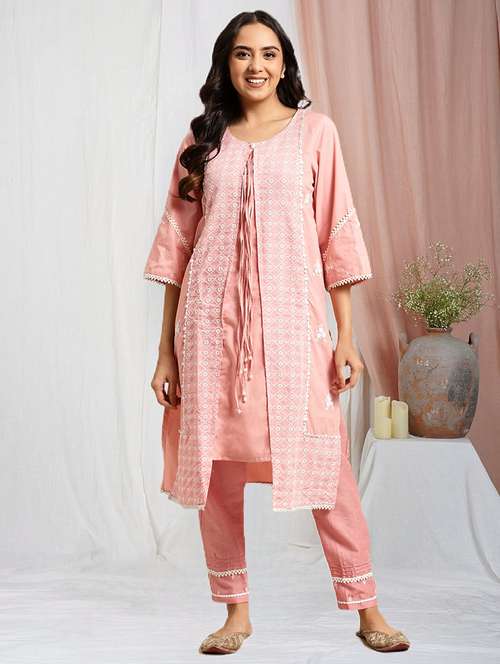 - Find gorgeous sets of ethnic wears in trending designs in pink colors suitable for casual wear of occasions.