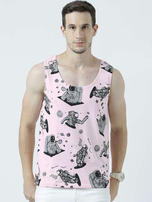 men scoop neck front print sleeveless vest
