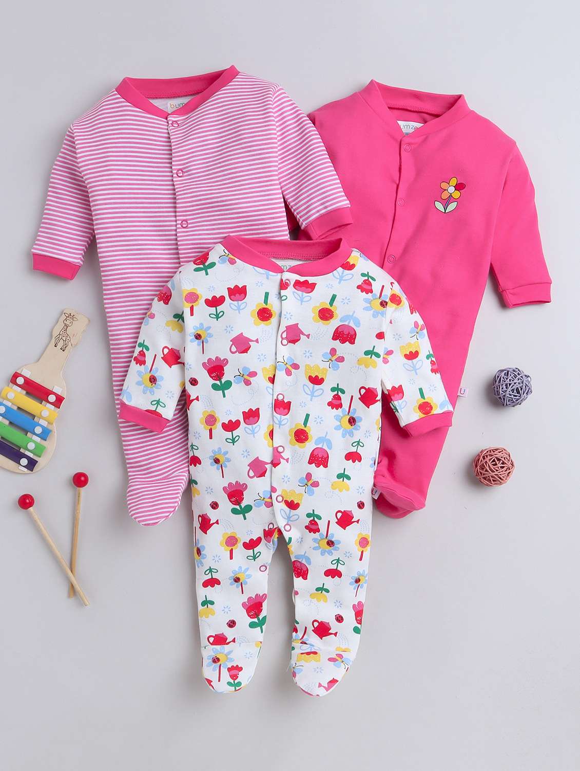kids pack of 3 multi colored onesies