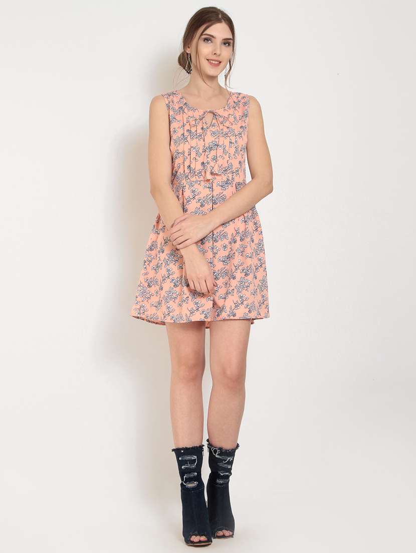 pink printed crepe a-line dress