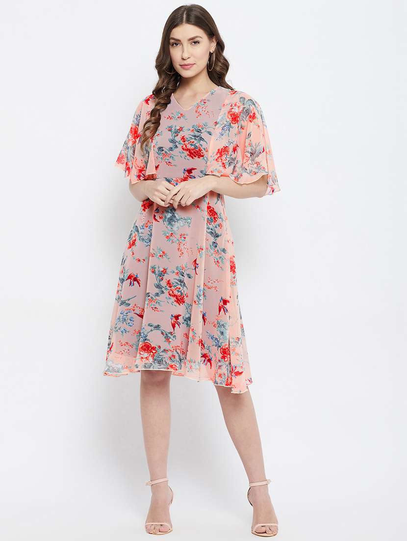 - » v-neck floral fit & flare dress