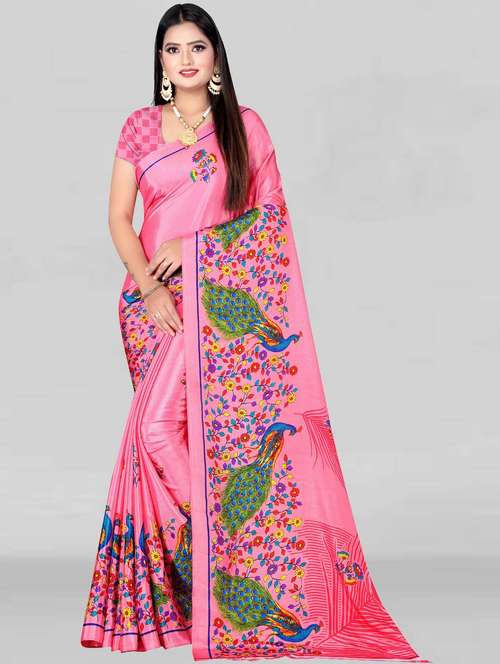 - » women's floral pink colored saree