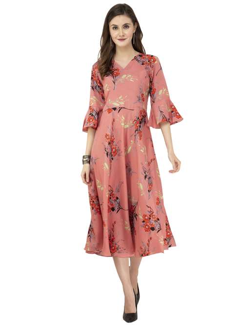 bell sleeved floral flared dress