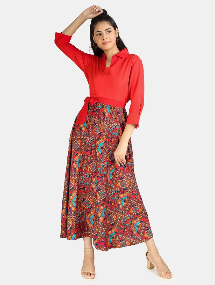 - » red crepe fit & flare dress