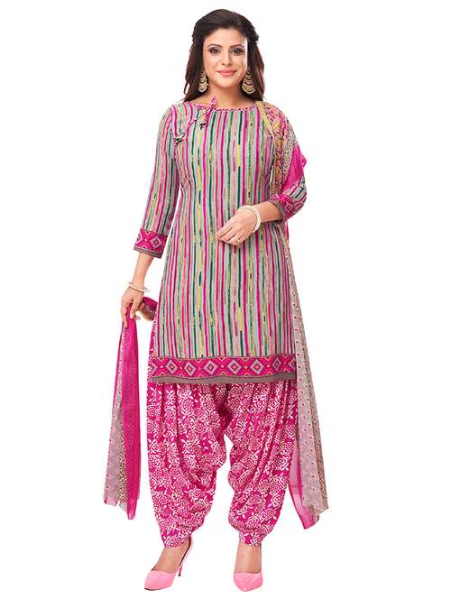pink crepe unstitched suit - 18320863 - Very Small Image - 1