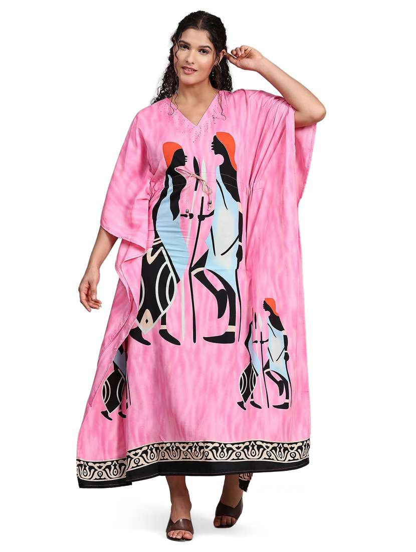 - » v-neck printed kaftan dress