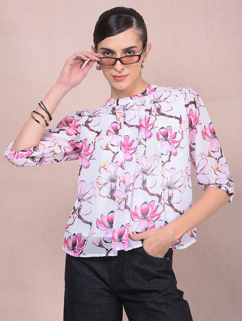 Crimsoune Club Women's Pink Floral Print Top Redefines Fashion With Its Elegant Design And Unmatched Comfort.