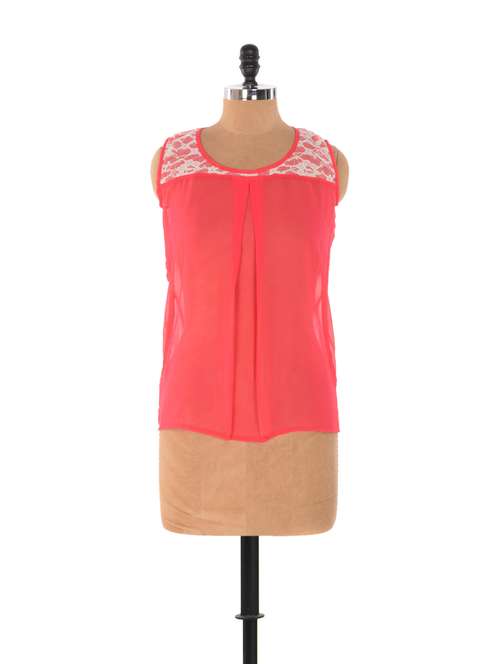 - » pink cut-sleeved sheer top