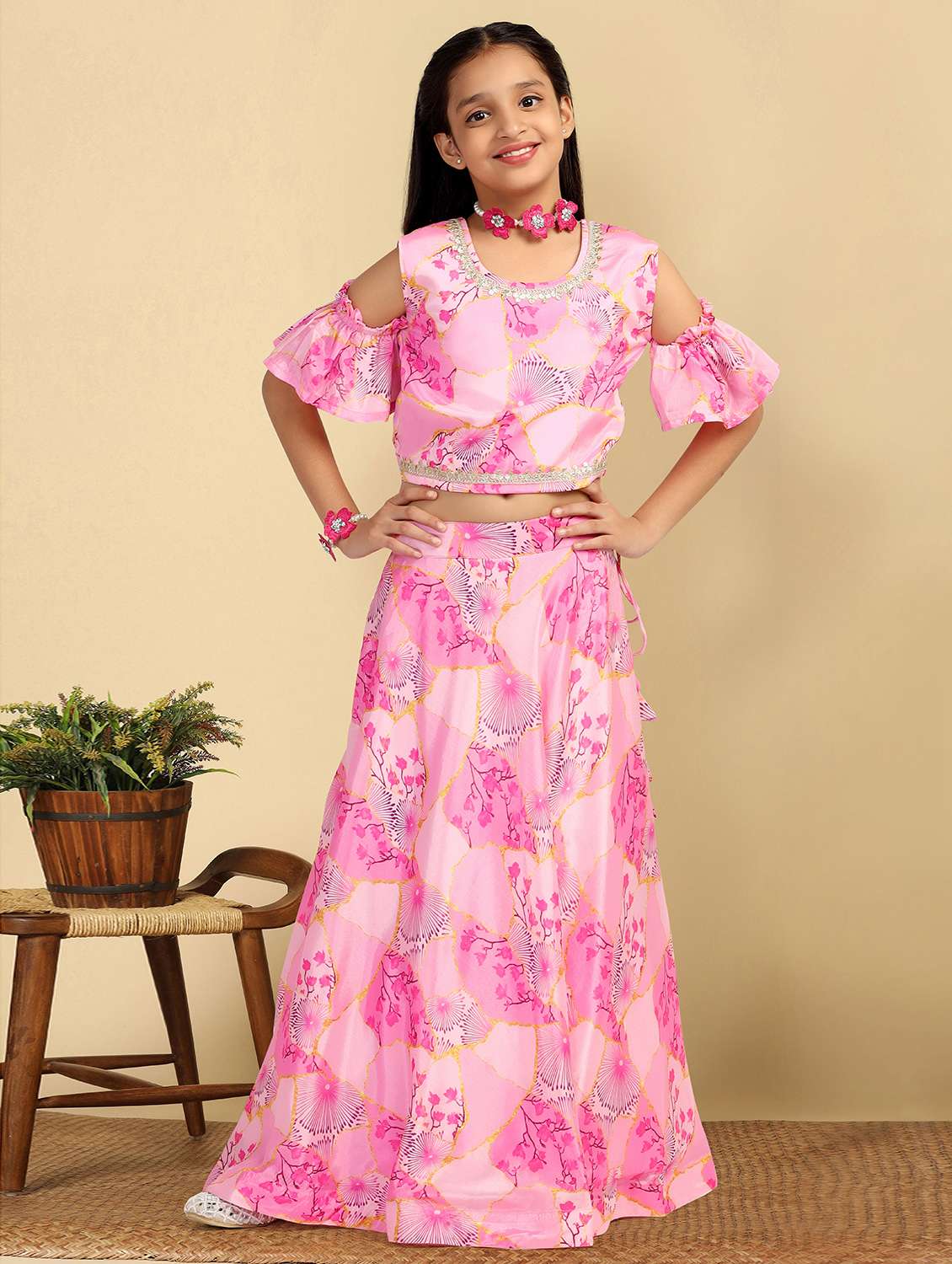 pink polyester lehenga choli