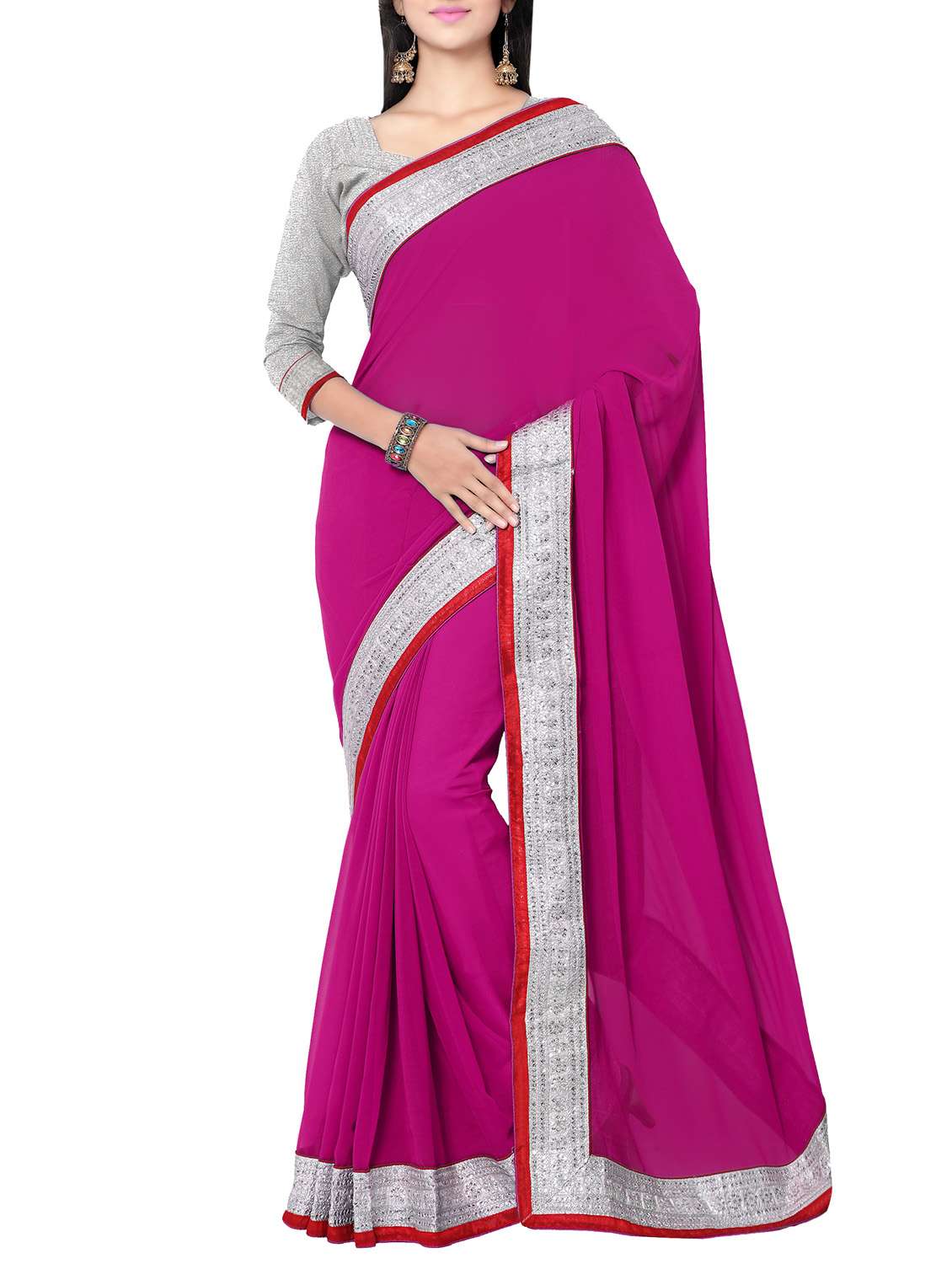 - » pink faux georgette bordered saree with blouse