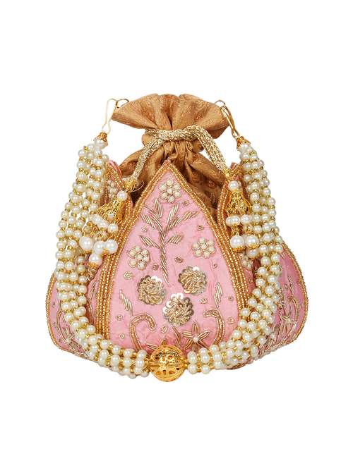 pink faux silk ethnic potli