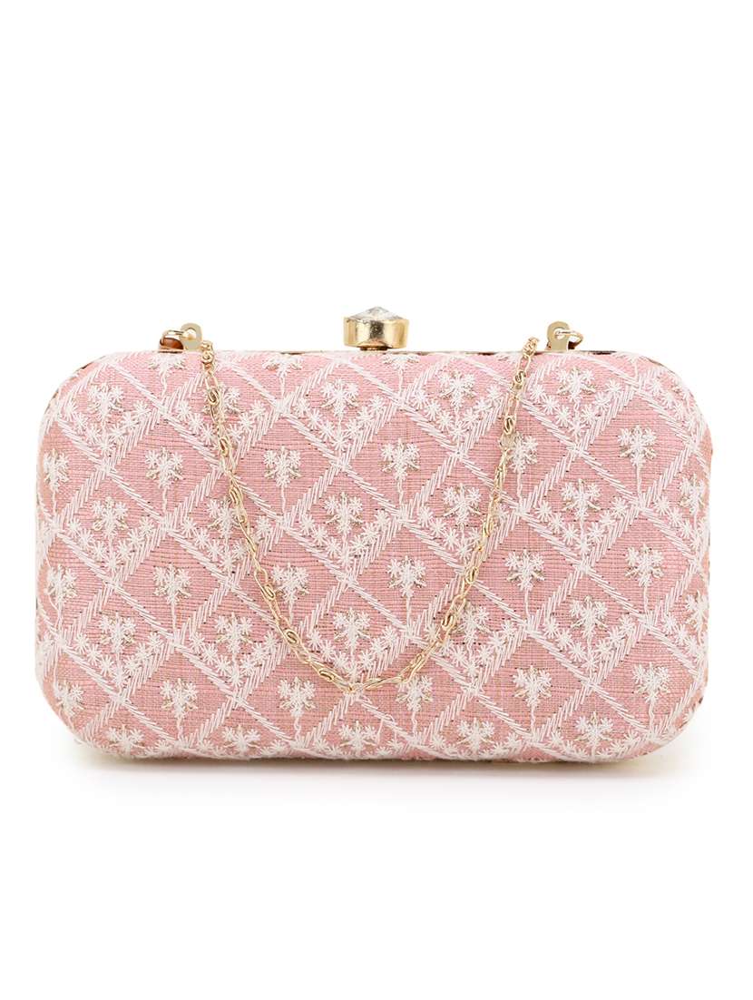 pink faux silk box clutch