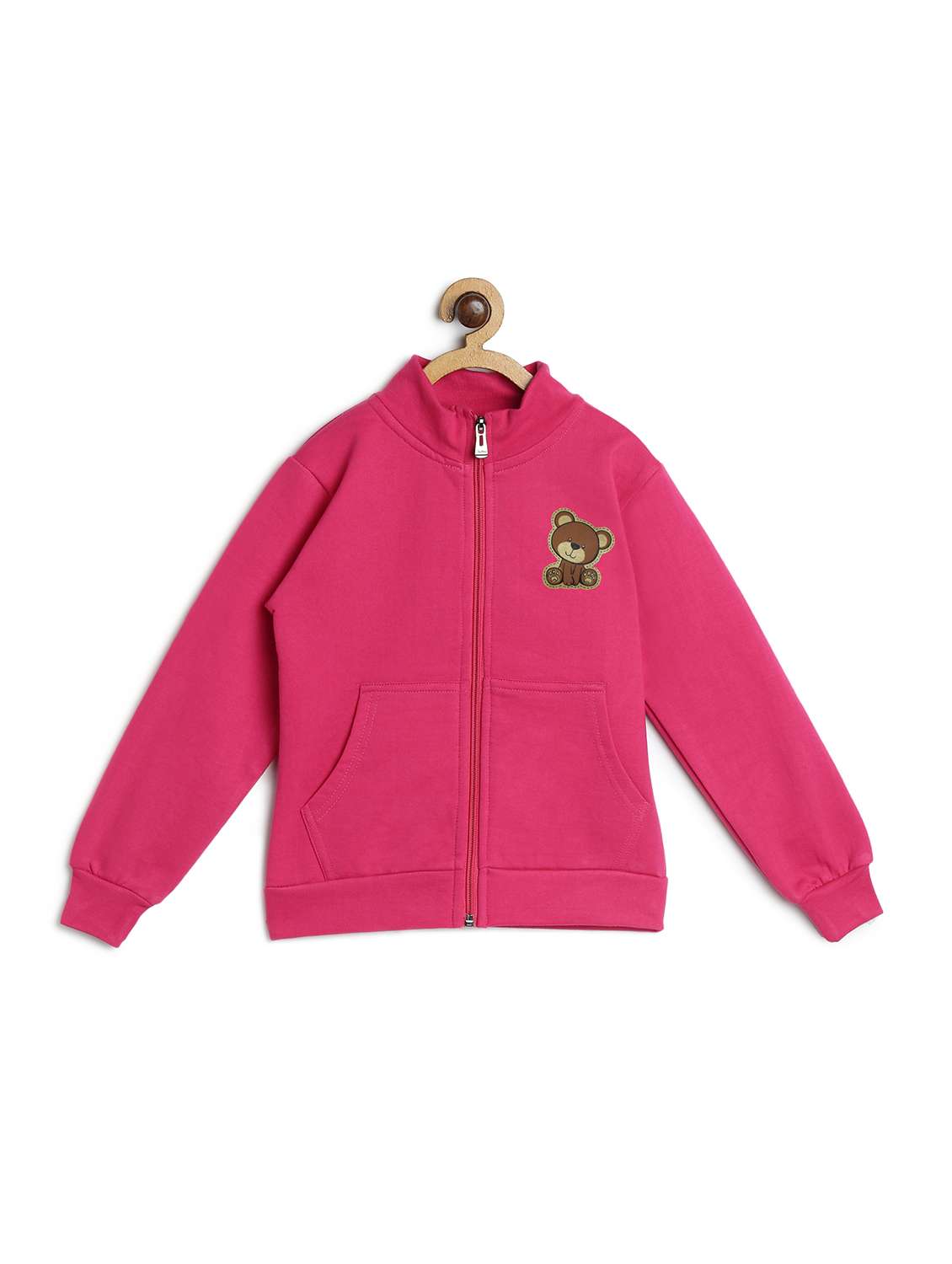 Sweet angel Pink color Tneck sweatshirts with bear face and kangaroo pocket on front in fleeze fabric for Girls